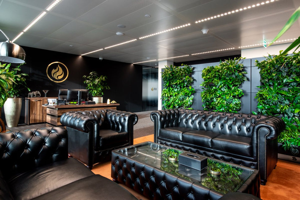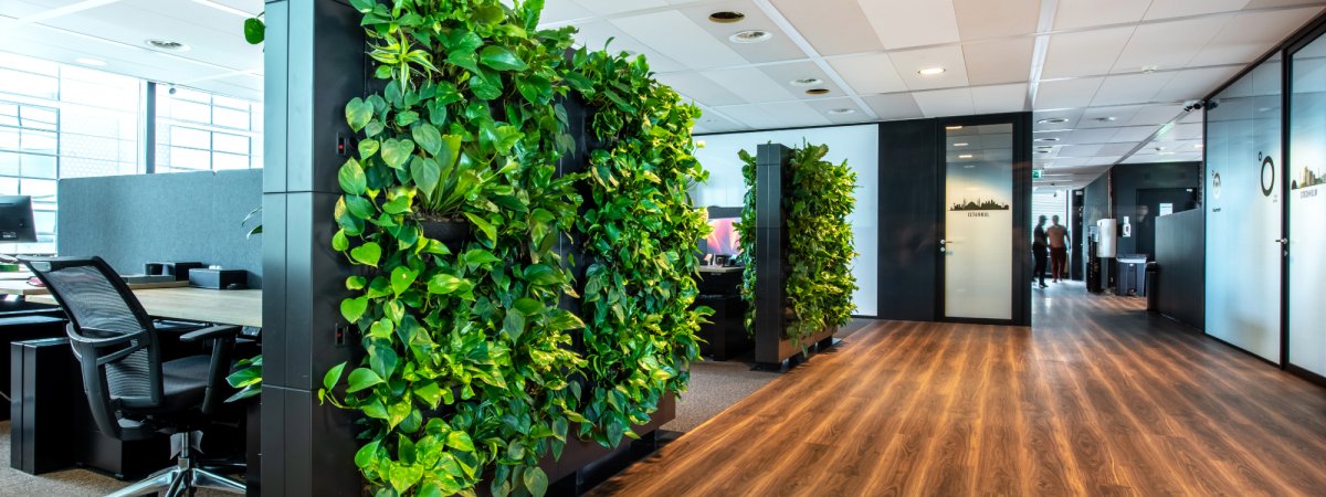 Die Pflanzen dämpfen Geräusche und sorgen für eine angenehme Akustik im Raum.